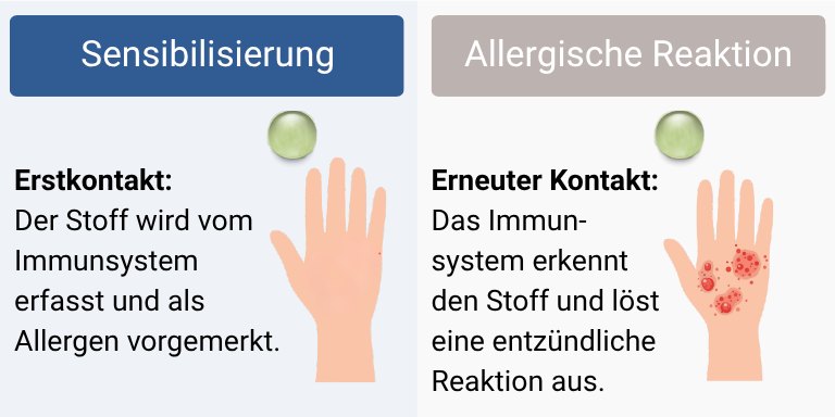 Eine Allergie auf Kosmetika entsteht nicht beim ersten Kontakt. Sie entwickelt sich in zwei Phasen: